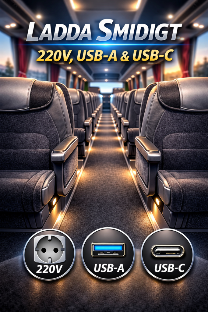 För att möta dagens och morgondagens behov genomför vi nu en omfattande uppgradering av samtliga våra bussar. Inom kort utrustas hela flottan med det mest moderna laddkonceptet på marknaden, en lösning som erbjuder både 220V, USB-A och USB-C vid varje sätespar. Detta är en ovanlig och i stora delar unik satsning i branschen. Genom att […]